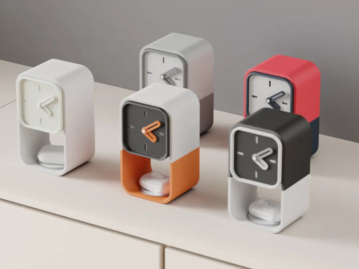 Reimagine your desktop with the Capsule Tower Desk Clock – a blend of elegance and utility. This vertical clock boasts a sleek capsule-shaped silhouette and integrated storage nook for small essentials like earbuds or rings. Available in bold, contrasting color combos, it adds a futuristic charm to any room or office setup.