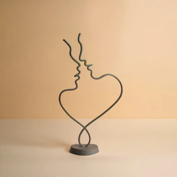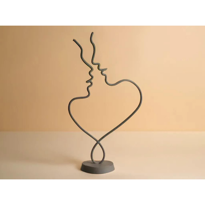 Add a touch of elegance and emotion to your space with this Minimalist Couple Kissing Sculpture. Crafted in a sleek black wireframe design, this piece artistically forms two faces leaning in for a kiss, merging into a heart-shaped outline. The base provides sturdy support, making it an ideal centerpiece for coffee tables, shelves, or office desks. Perfect for romantic settings, anniversary gifts, or simply celebrating love through art.