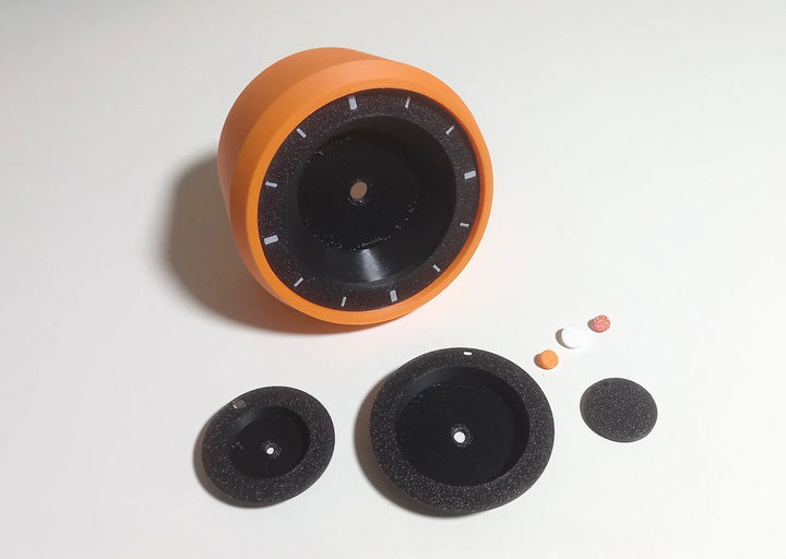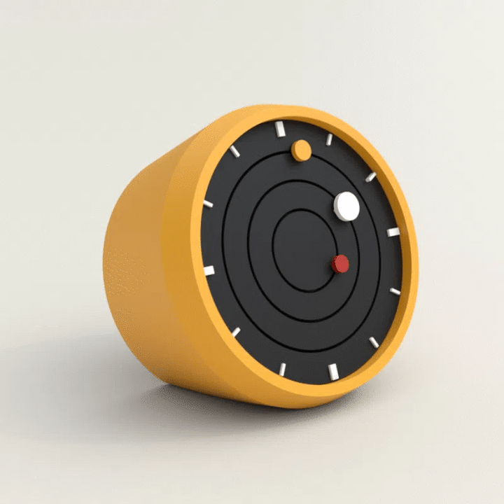 Step into the future of timekeeping with the OrbitTime Planetary Motion Desk Clock. Inspired by the motion of celestial bodies, this clock replaces traditional hands with orbiting spheres in red, white, and yellow to mark seconds, minutes, and hours. Housed in a mustard yellow casing and contrasted with a matte black face, this minimalist yet imaginative clock is perfect for design enthusiasts, space lovers, or anyone looking for a functional piece of art.