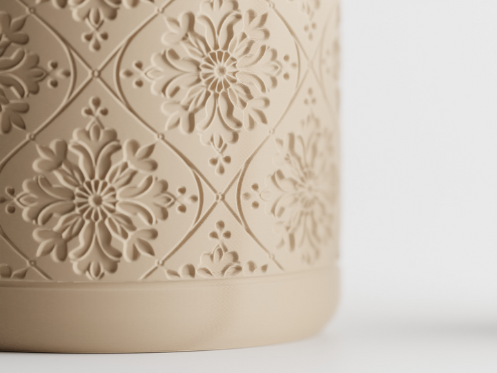 The Plant Pot Floralis brings a touch of heritage charm to modern eco-living. Featuring intricate floral embossing inspired by classic tilework, this planter is crafted from sustainable, recycled materials that reduce environmental impact. Its durable build ensures long-lasting beauty, while its design makes it ideal for water-wise plants like succulents and bonsai. Perfect for those who want sustainability with an artistic touch.