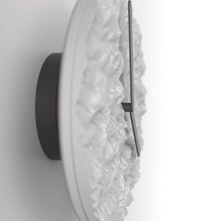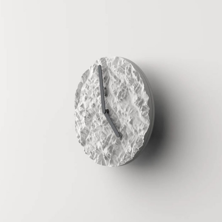 Inspired by rugged landscapes, the Textured Terrain Wall Clock brings a touch of natural artistry to your space. Its sculpted white surface mimics mountainous textures, delivering a 3D visual depth that's both organic and modern. Paired with sleek black hands, this clock turns the passage of time into a statement of raw elegance and creative sophistication.