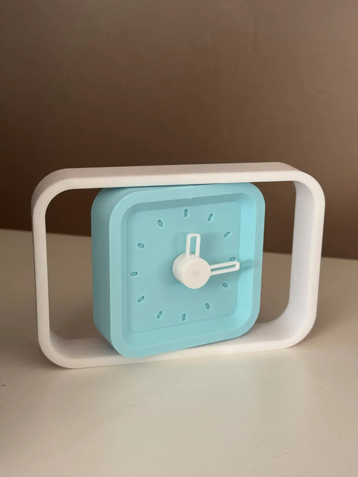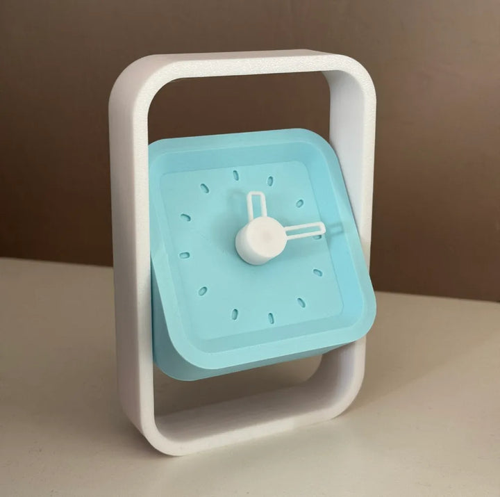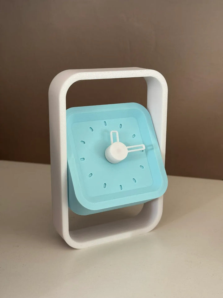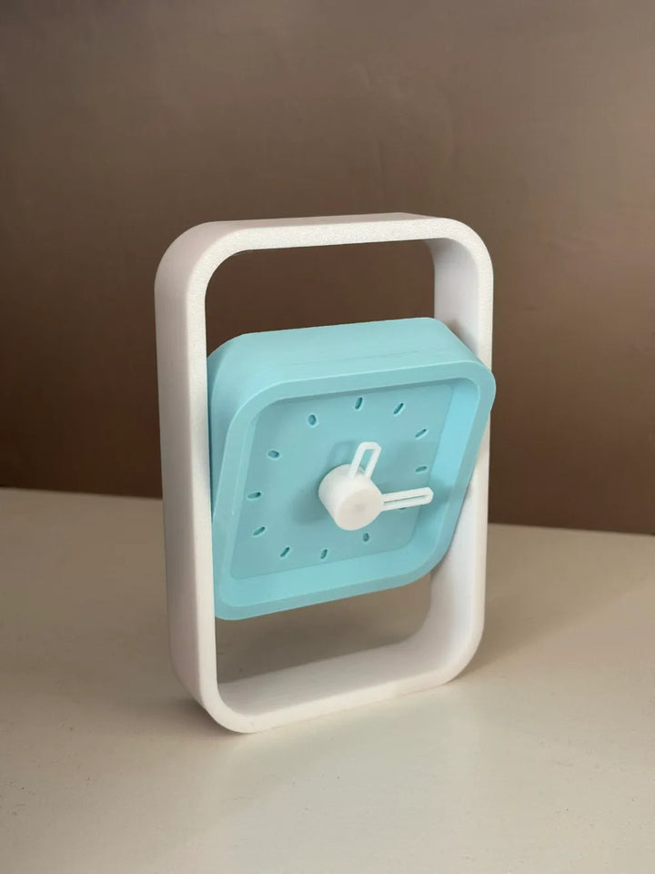 The TiltFrame Modern Desk Clock reimagines balance and form in a fresh, minimalist silhouette. Featuring a tilted square face suspended in a sleek rectangular frame, this clock brings motion-inspired elegance to your workspace. Its pastel blue dial and chunky white hands offer a soft visual appeal, ideal for contemporary interiors or Scandinavian-style decor.