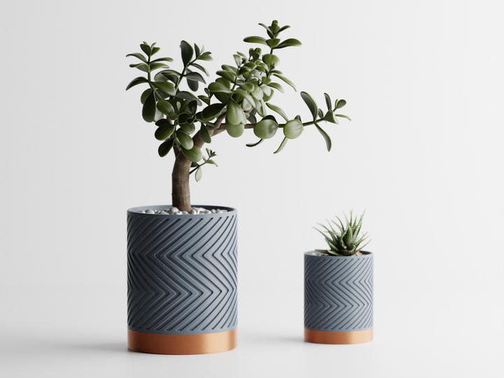 Elevate your greenery with our eco-conscious two-tone zigzag plant pot set, crafted from biodegradable and recycled materials. The striking chevron texture paired with a sleek metallic base brings modern elegance to any space. Perfect for succulents, bonsai, or decorative indoor plants, these lightweight and durable pots are free from harmful chemicals—designed to showcase nature beautifully while caring for the planet.