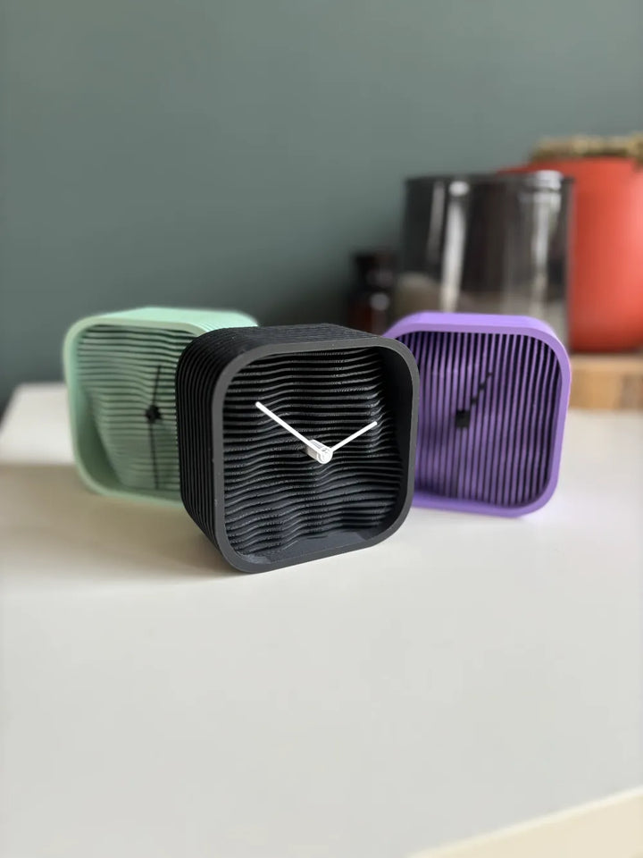 Bring movement and dimension to your space with the Wavy Texture Modern Clock. Designed with layered contours that mimic organic waves, this clock is both a timepiece and a visual statement. Its modern square shape and 3D-printed precision make it a standout addition to shelves, desks, or bedside tables.
